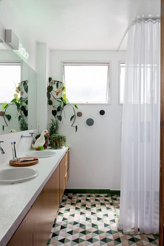 Outra forma que também delimita o espaço de banho e cria uma atmosfera mais refinada para o banheiro. Além destas vantagens, também garante privacidade em banheiros compartilhados.