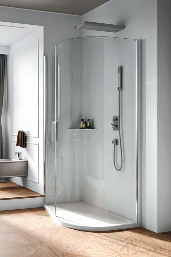 Este tipo consiste em um painel de vidro fixado do piso ao teto. Ótima opção para banheiros mais amplos, ele deve ser acompanhado de um piso com uma leve profundidade ou curvatura na área molhada, para garantir que a água não se espalhe por todo o espaço.