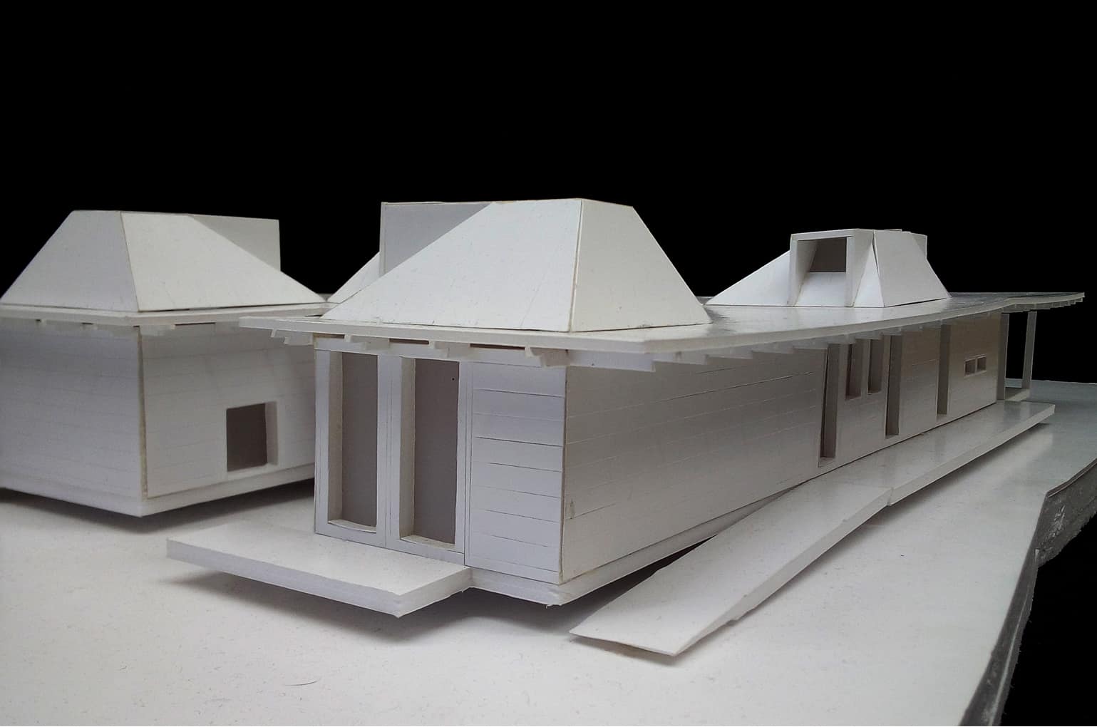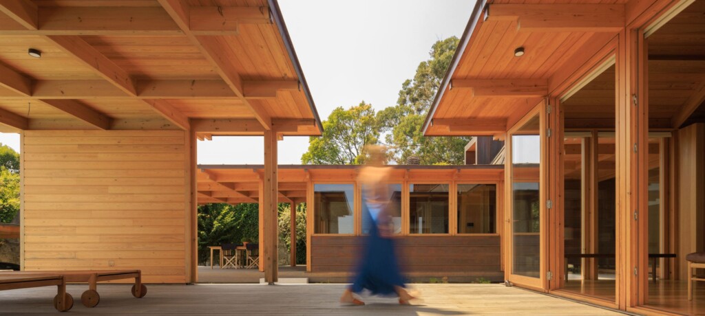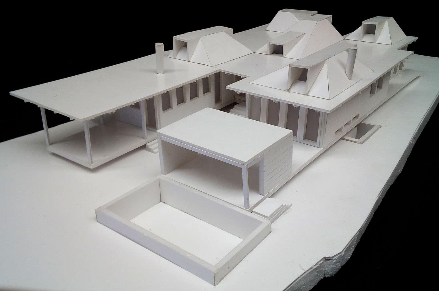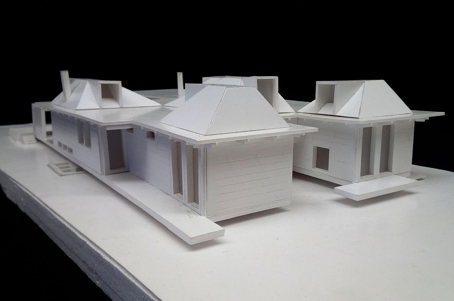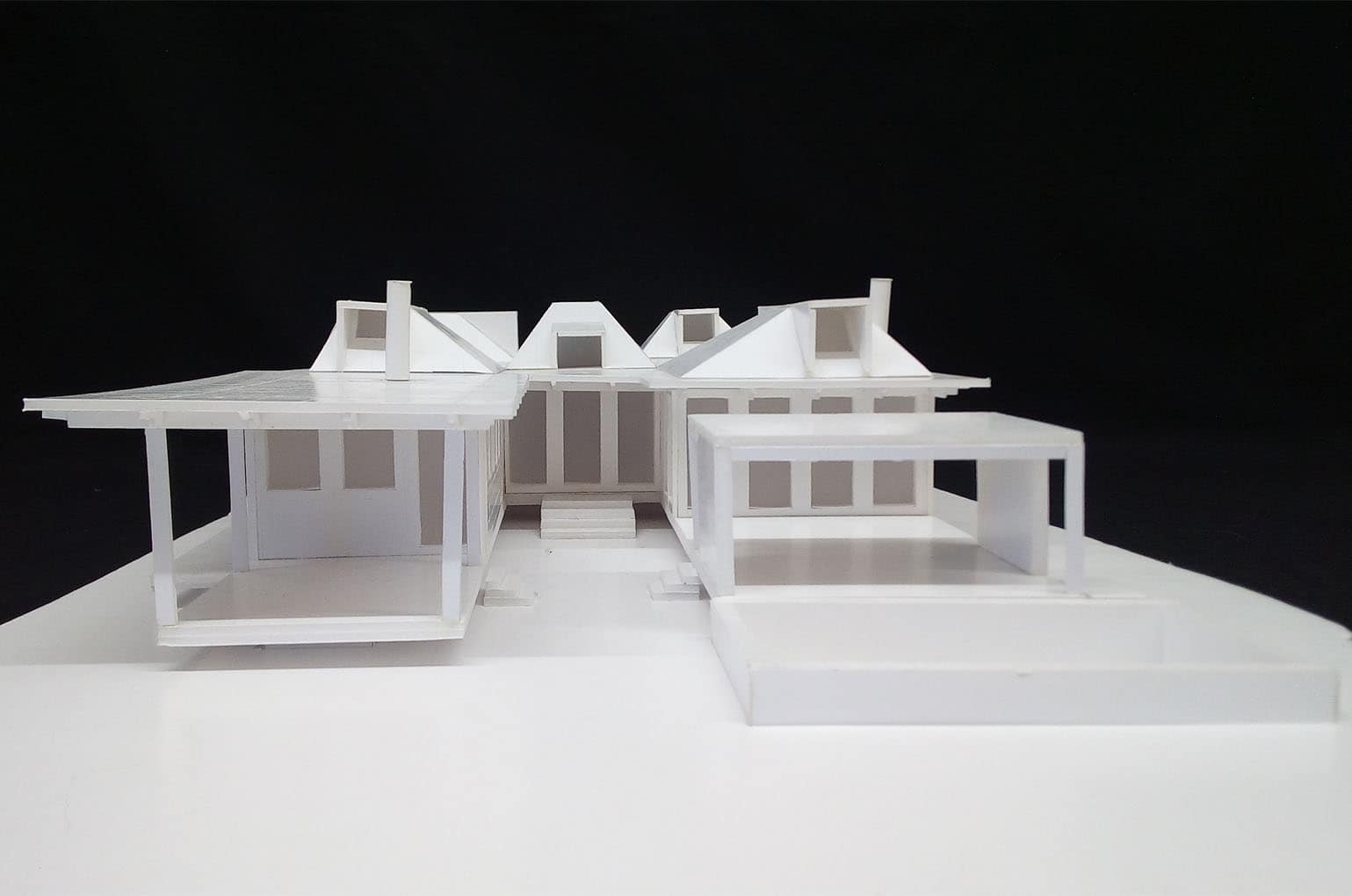 "Respeitados os afastamentos, a Casa eleva-se do solo de modo a não perturbar – demasiado – o subsolo. Sobre uma base em betão, pousou uma estrutura de madeira formada por dois Us que em conjunto dão a forma de H à Casa. O U da frente – a sul – contem as áreas sociais – cozinha, sala de jantar e sala. O U de trás – a norte – contem os três quartos."