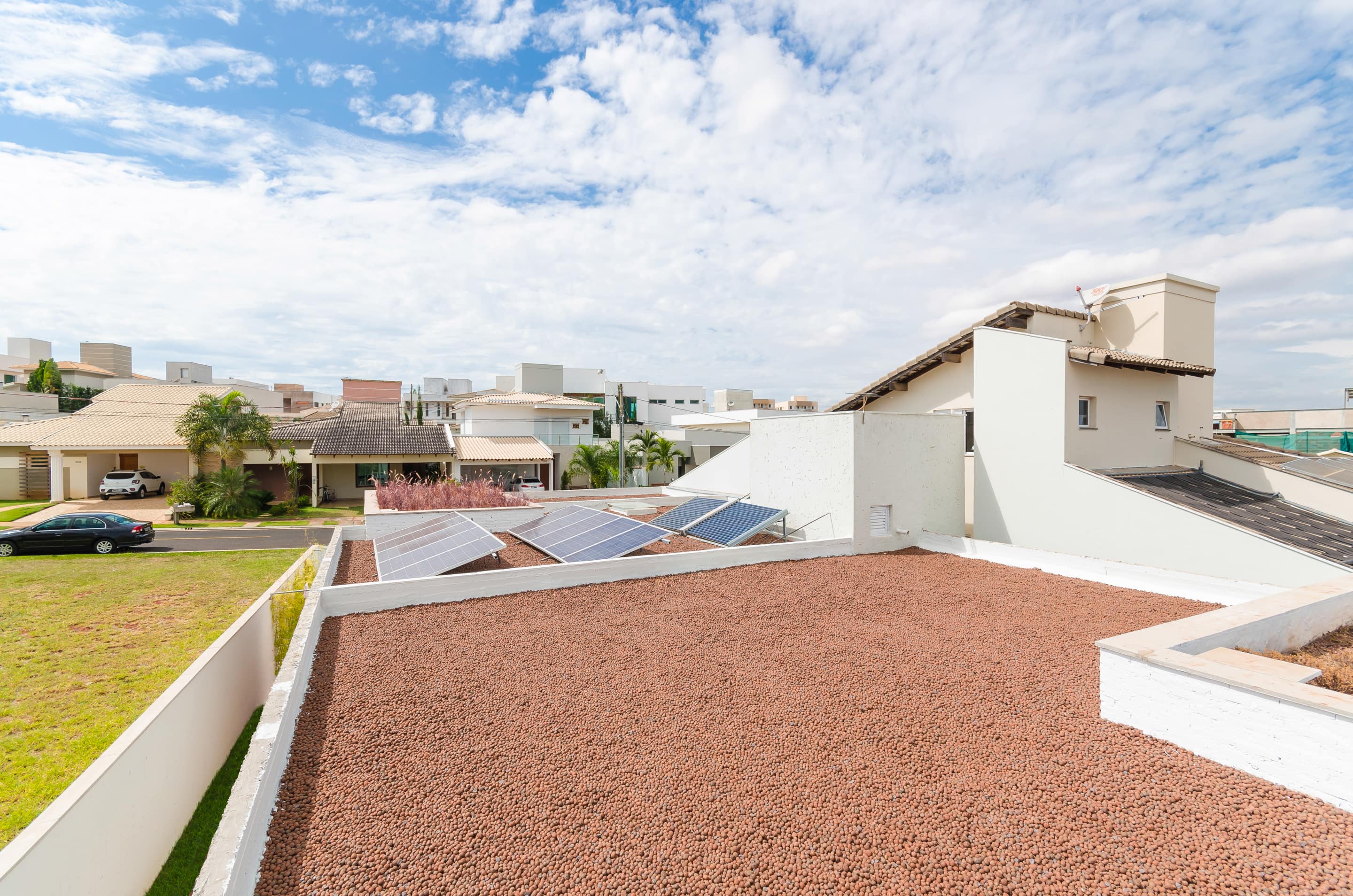 Por estar localizada em uma região de clima quente os quartos foram orientados a sudeste, impossibilitando o aquecimento excessivo durante a tarde. As paredes duplas de tijolo aparente seguem orientação solar norte e oeste enquanto a laje maciça impermeabilizada coberta com jardim e partes com argila expandida, proporciona beirais sobre as esquadrias protegendo-as de insolação direta.