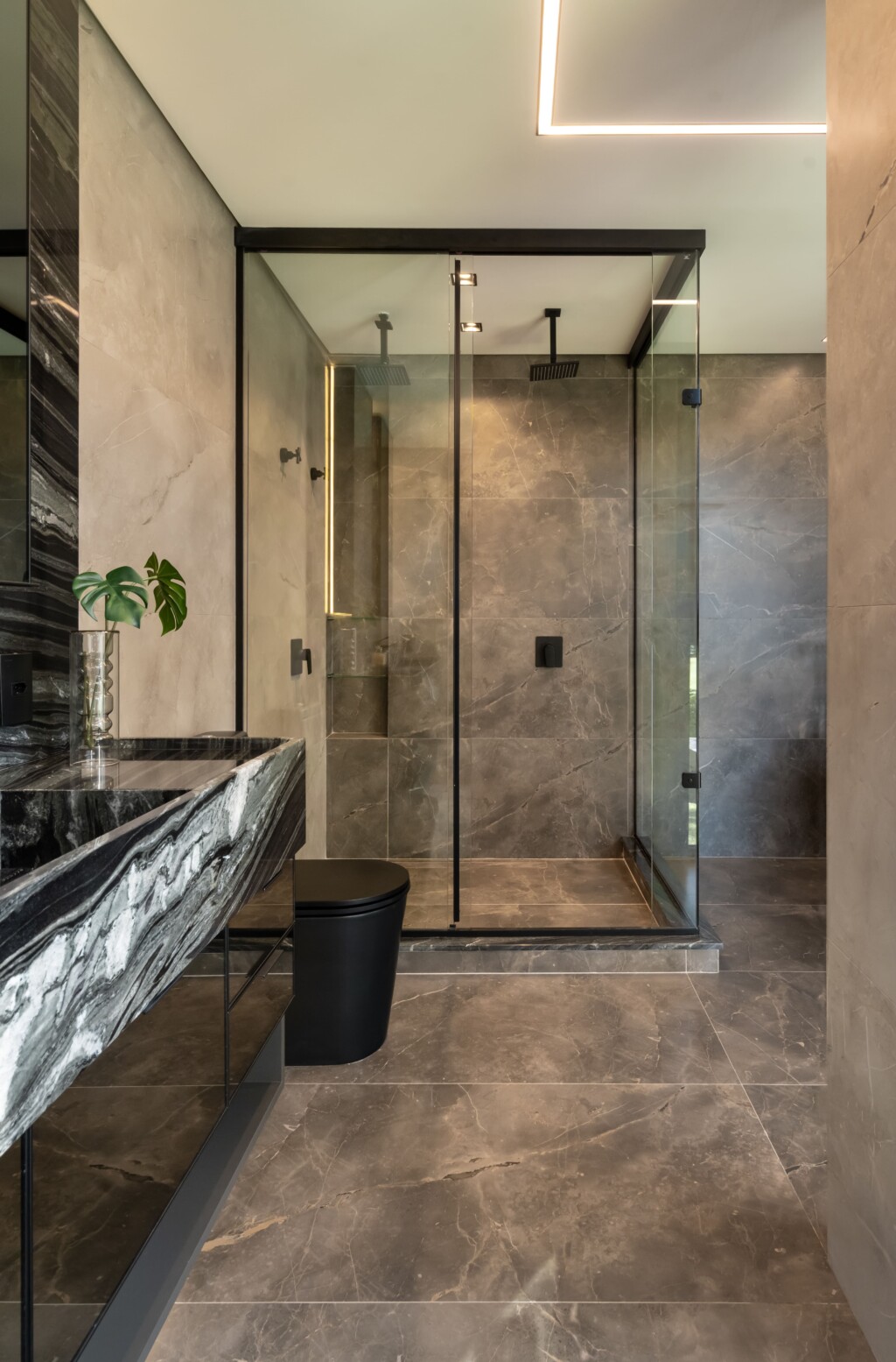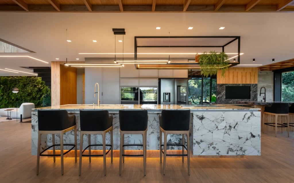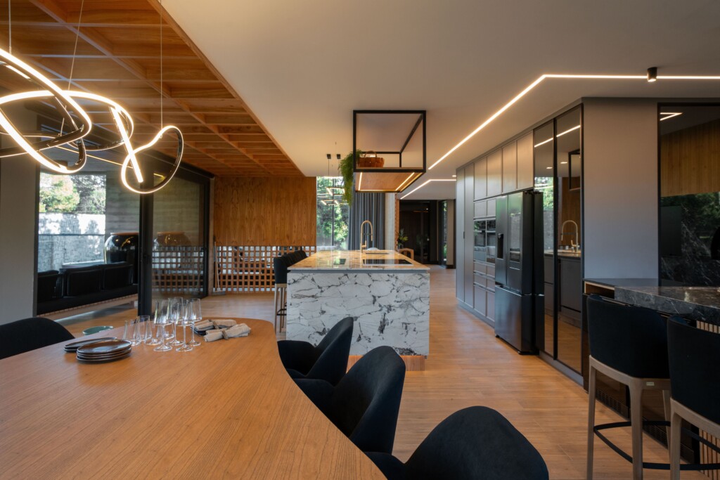 A casa convida a respirar mais devagar, a perceber a amplitude dos espaços e a exclusividade dos detalhes. Texturas, materiais e volumes se articulam em equilíbrio, criando uma narrativa silenciosa que acolhe, inspira e conecta. Nada é aleatório, cada escolha foi pensada para valorizar a experiência de habitar.