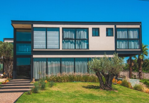 "Distribuída em dois pavimentos, a edificação conta com 400m² privativos. Suas cinco suítes abrigam confortavelmente