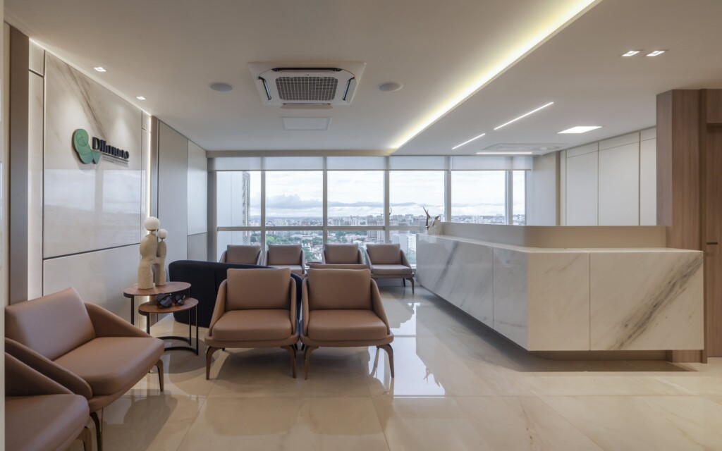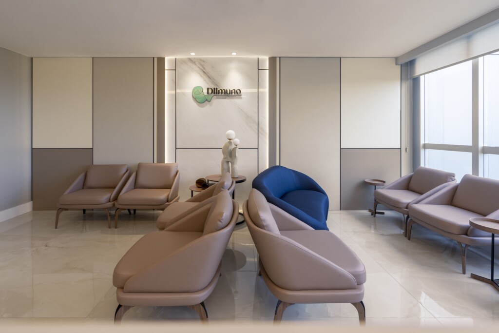 Cada escolha, do mobiliário à paleta de cores, foi pensada para proporcionar harmonia entre tecnologia, acolhimento e eficiência. O resultado é um espaço de saúde que transmite confiança, eleva a experiência do paciente e reflete o compromisso da DIImuno em oferecer um atendimento humanizado em um ambiente de excelência.