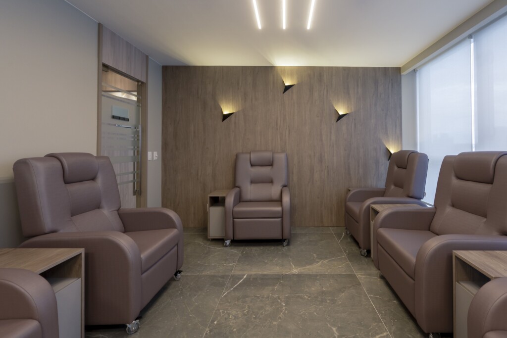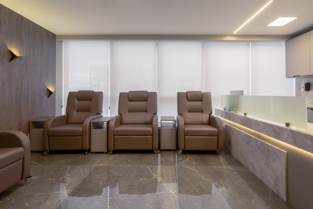 A Clínica DIImuno nasceu com a missão de unir eficiência médica a uma experiência verdadeiramente acolhedora. O projeto, cuidadosamente pensado em cada detalhe, ocupa 225m² e foi planejado para oferecer funcionalidade sem abrir mão do conforto. São cinco consultórios modernos, salas de infusão coletivas e privativas, uma recepção ampla que transmite tranquilidade desde a chegada e uma área de apoio completa, garantindo que profissionais e pacientes encontrem tudo o que precisam em um só lugar.