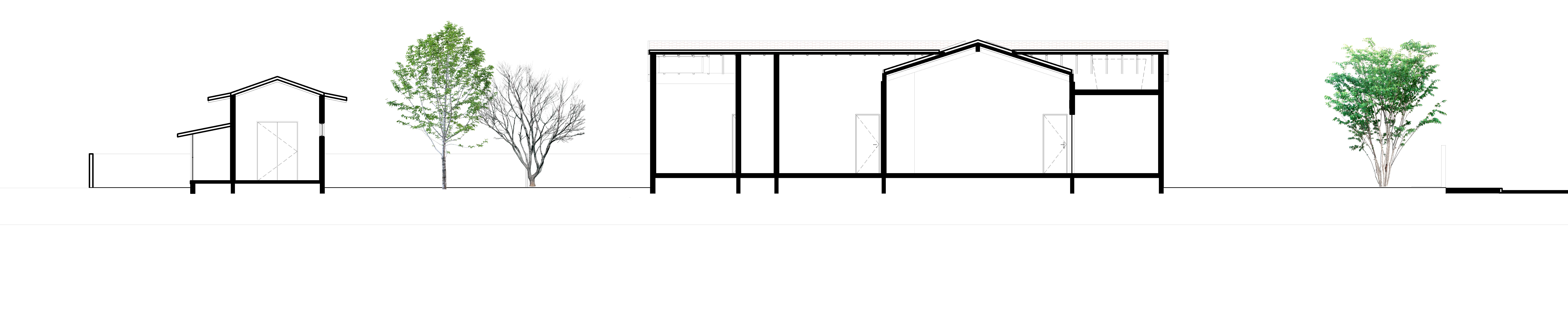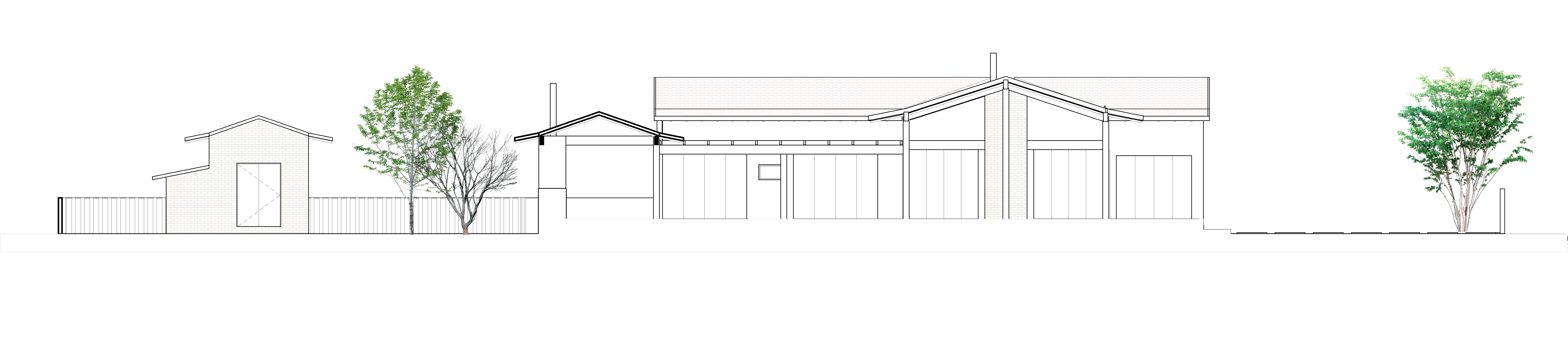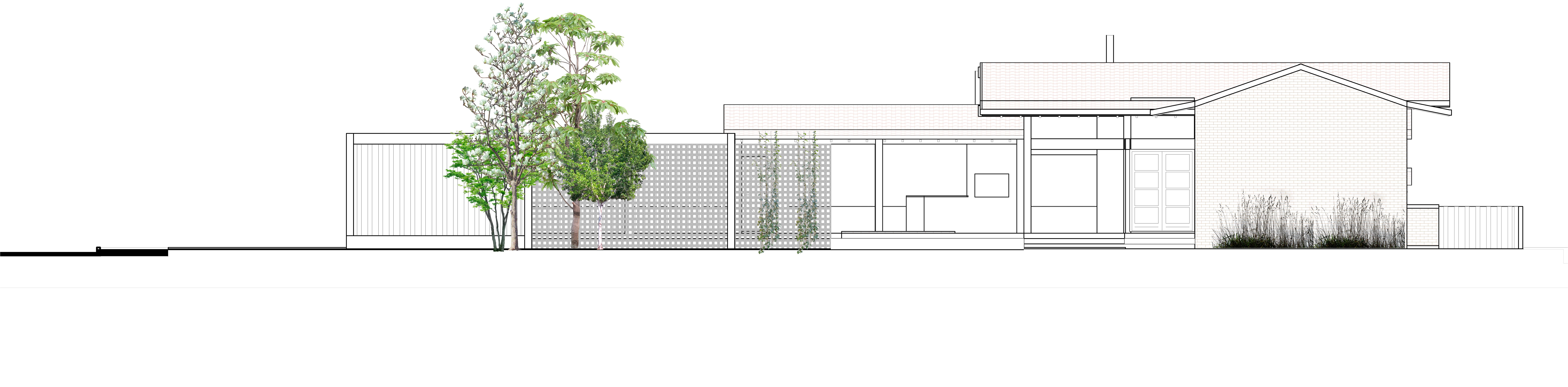 A planta foi concebida com as áreas sociais e íntimas voltadas para a vegetação local e a leste, com as árvores auxiliando na temperatura e incidência solar. Já os ambientes de serviços estão situados atrás dos ambientes sociais e íntimos, na divisa com a fachada sul que também é divisa com o lote vizinho, já prevendo que futuramente terá uma nova casa e que essa fachada terá que proporcionar privacidade a todos.