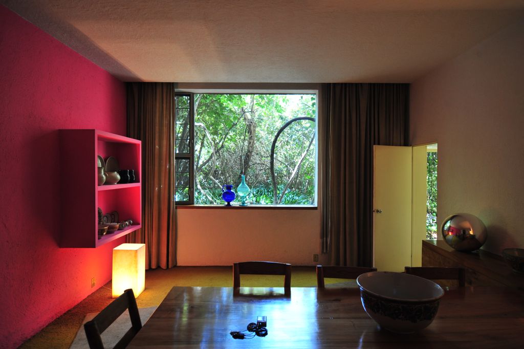 O jardim interno é parte fundamental da casa, trazendo natureza e frescor para dentro do espaço. Esse diálogo entre o orgânico e o construído é uma marca do projeto e da filosofia de Barragán, que valorizava a harmonia e a serenidade.