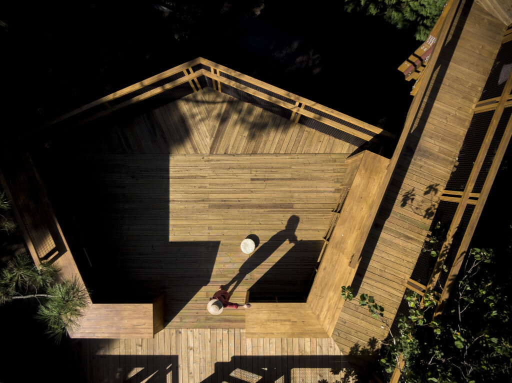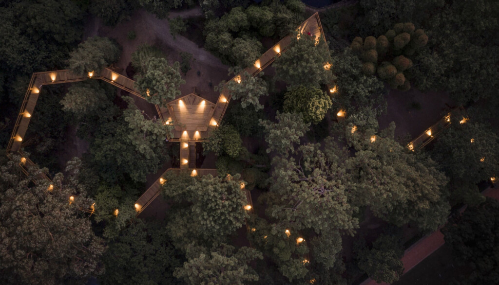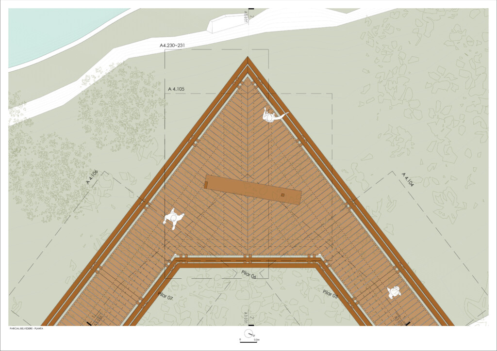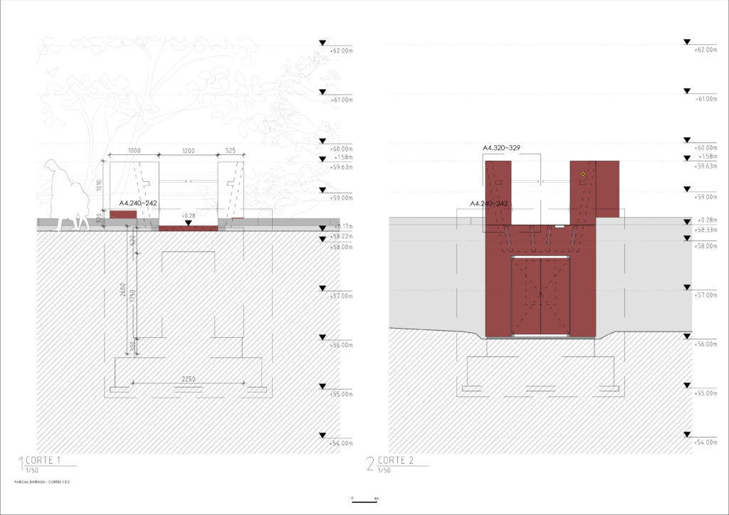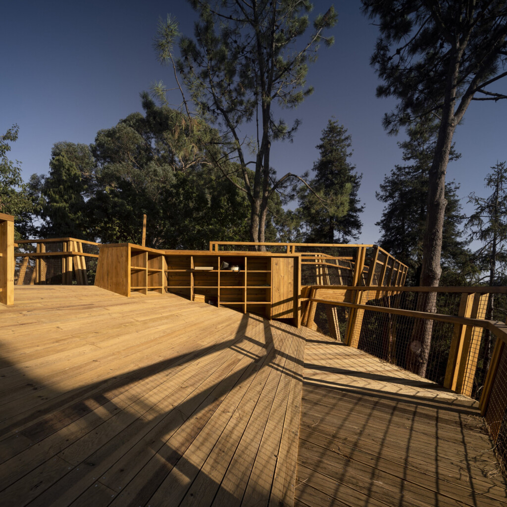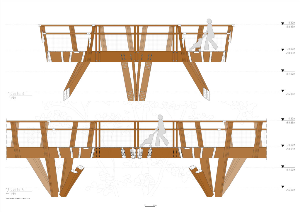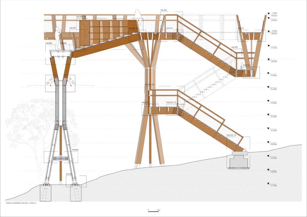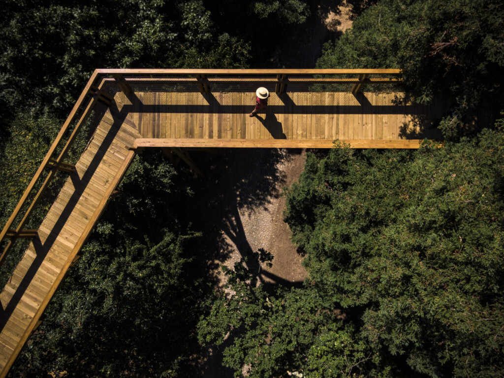 "Percurso elevado de Serralves. Visitar Serralves é sempre percorrer um percurso no espaço, no tempo ou no tempo do espaço. Criar um percurso, complementar aos existentes, só poderia ser por entre as copas das belas e imponentes árvores do Parque."